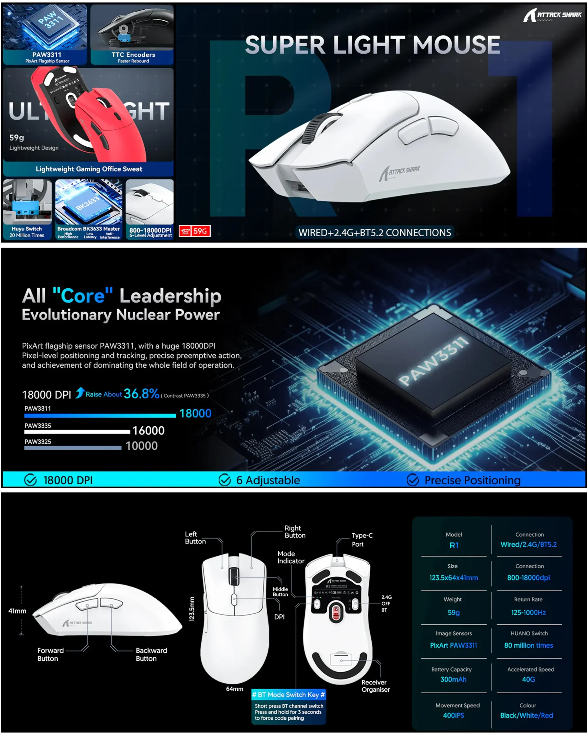 ماوس ATTACK SHARK R1 أسود